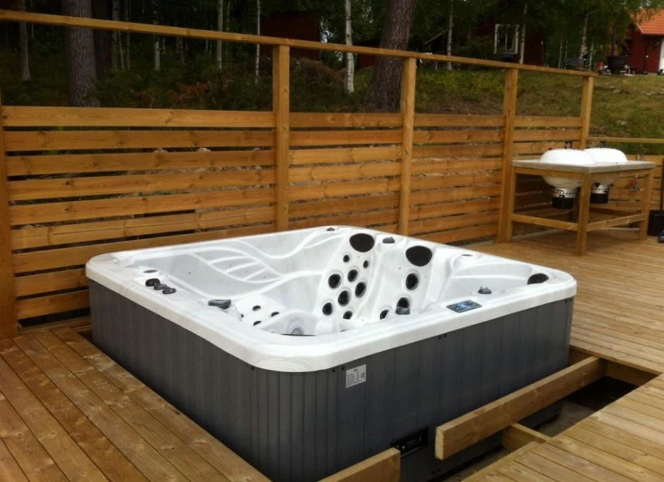 Et le bain à remous pour 4 personnes est l'un des modèles de spa d'hôtel les plus populaires, 4A10 avec un grand espace de 2,1 m et des jets de massage de 45 pièces, il sera le meilleur choix pour une utilisation hôtelière.